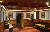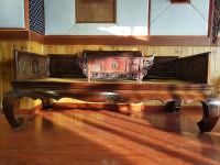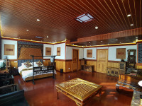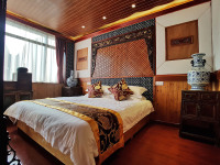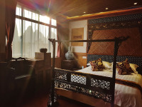 菊花是我国十大名花之三,花中君子之一,古往今来传唱着无数吟诵菊花的诗文,最著名的当属陶渊明的“采菊东篱下,悠然见南山”,尽显陶隐士与世无争、性淡如菊的品行。菊花在中国的栽培源远流长,公元八世纪传至日本,十七世纪末引入欧洲,十九世纪风靡北美。菊花多开在深秋之际,颜色品种繁多,黄色菊花最为常见,代表着高雅的君子品格,而此客房中的粉色菊花,则在各种体现中国传统文化元素的室内装潢中,更显甜美、温柔和纯真。