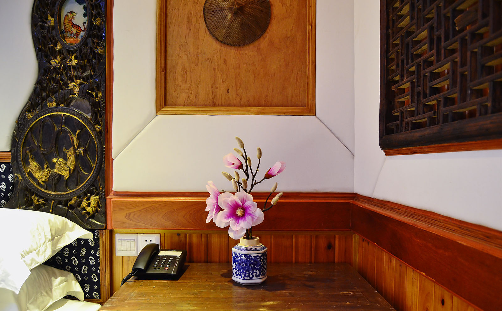 细雨蒙蒙的初春,是玉兰花初绽时分。她不妖娆,却艳丽;她高贵,却不张扬。饱满的花瓣向四方伸展,散发着沁人心脾的清香。玉兰花颜色或白、或黄、或红,亭亭玉立摇曳在枝头。三十多年前,上海市花经市民投票选举,定为白玉兰,取其花大而洁白,开放时朵朵向上,象征着一种开路先锋、奋发向上的精神。祝愿您休憩在此房中时,装饰在床头墙上、雕工精美的床架和各式古典家具能让您赏心悦目,更祝愿您的生活如玉兰花般,天天向上!