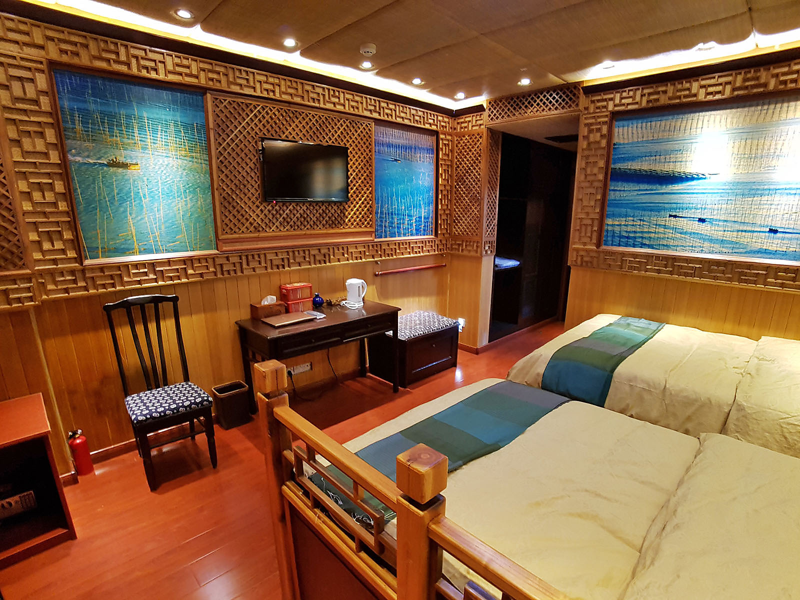 在苏克任先生多年的摄影旅游生涯中,他体会到,美不仅仅存在于未经修琢的原始大自然中,更有人类后天创造的美。霞浦,霞光之城,浦上传奇,就是一个最好的例证。位于中国东海之滨,半个世纪前的霞浦还是一片荒芜的滩涂。而现如今,这里已成为一个滨海之上建立起来的传奇之地。沿着霞浦绵长的海岸线,渔民们建起了海带、紫菜养殖场,滩涂上竹竿错落有致的排列在大小“S”形的港湾水道两边,形成了优美线条,构成了一幅独特的抽象图案。滩涂与大海,天光云影,潮起潮退,日出日落,霞光炫目,四季变幻,气象万千,无怪乎霞浦已成为中国十大摄影圣地之一。风光是如此的独特,吸引着苏克任先生千里迢迢,趋之若鹜。每次拍摄都让他有一种全新的体验,照片捕捉到的景致也都各有千秋。在这间客房里,他安装了栏杆,希望能带给您同样的感受,凭栏眺望人间美景。